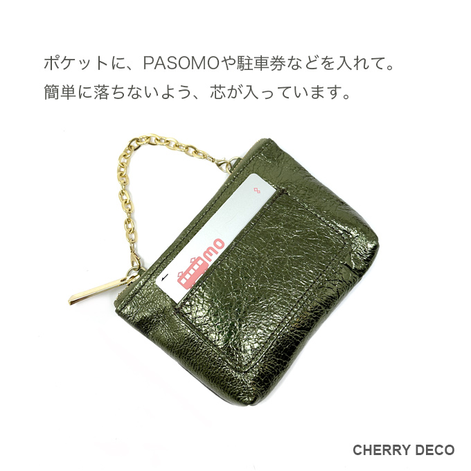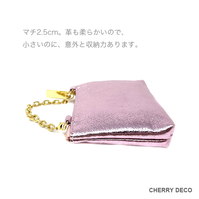 ♪Cherry Deco Luxe シリーズ♪ミニミニポーチチャーム日本製 "minico"(ミニコ)と呼んでください <こだわりポイント> ・ベースは、スエードなのにしっかり感のある高級厚口ピッグスエードを使用 ・CherryDeco Luxeの看板革を、お気軽にお試ししていただきたくて、リーズナブルな価格でご用意致しました。 ・ジッパーは、国産YKKを使用。引き手も扱いやすい、大きめサイズ(長さ約11cm)にこだわりました。 ・サッと取り出したいカギやリップ、駐車券、エコバッグなどを入れて、バッグチャームとしてお使いいただけます。 ・自然の恵みである革を、最後の最後まで使い切りたいという想いで、裏面に本革特有のシミや傷がある部分も、 敢えて使っておりますので、ご理解くださいませ。 ・バッグのアクセントとして、色々なカラーをお楽しみいただけます。 ・長いチェーン(別売り。又は、お手持ちのもの)を付けて、ミニショルダーバッグとしてもお楽しみいただけます。 ・国内産原皮から、なめし・染色・仕上げまで、すべてが国産として製造されている革で、柔らかい割に強度のある革です。 ・柔らかで上品な高級感ある素材感(ぜひお手にとって触っていただきたいぐらいです) ・大きめパーツで、色々なバッグへの付け替えも楽々。 ・大量生産ではない、少量でも上質へのこだわり。 ・Cherry Deco Luxe made in Japan のオリジナルタグ付き(内側) ・一つ一つが職人さんの手作り。made in Japan日本製です。 色:ベビーピンク,ピーチ,スミレ,カーキ,パイソン柄ベージュ 大きさ:横12cm×幅2.5cm×高9cm、チェーン約15cm 素材:ピッグスエード・メッキ(チェーン)・YKKファスナー 生産国::日本 皮革製品のお取り扱いについて注意書きタグ付き。 ※皮革は湿気を嫌い、濡れるとムラができたりすることがあります。 ※汗や水。摩擦により色落ちや色移りが生じる場合がございます。 ※ベンジン類のご使用はお避け下さい。 ※撮影環境などにより、多少実物とお色味が違って見える場合がございます。 ※素材の性質上、表面に細かい班やキズが見られる場合や、色むらや質感等の個体差がございます。 ※箔加工の過程で、場合により特有の匂いのする場合がございます。 (上記の件に関しまして、ご質問等がございましたら、お気軽にお問い合わせくださいませ。) ※なるべく無駄のないように革を使うようにしているので、特に革の裏側に傷等がある場合がございます。 ※平置き、メジャー採寸の為、表記サイズと若干の誤差がある場合がございます。 上記の件につきましてご理解・ご了承の上、お買い求めくださいませ。