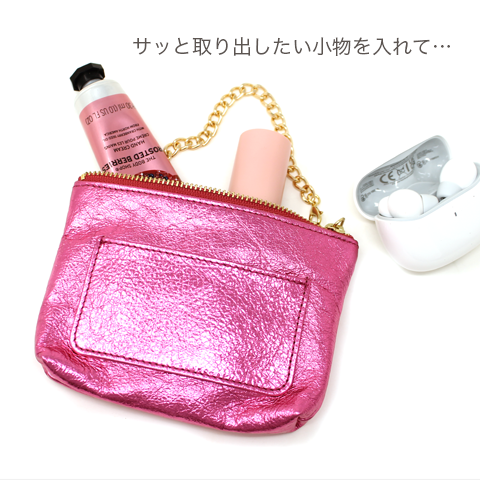・サッと取り出したいカギやリップ、駐車券、エコバッグなどを入れて、バッグチャームとしてお使いいただけます。