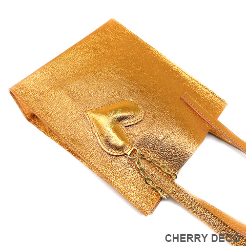 Cherry Deco Luxe コンパクトなのに収納力ありなミニトート♪日本製 かわいいプックリハート型チャーム付 本革高級スエードにオリジナル加工した箔メタリック生地 ちょっとだけ大人不良テイストなメタリックも、本革ベースだから上品なテイストに。 アクセサリー感覚で持てる、コンパクトさでコーディネートのアクセントとして気軽に持てます。 コンパクトなスッキリサイズながら、収納力抜群→長財布やペットボトルもラクラク入ります <こだわりポイント> ・日本の職人さんが豚スエードにメタリック箔加工した生地・革づくりから手作りしたオリジナル商品 ・ベースが高級スエードなので、軽くて柔らかい。クタッと馴染む高級感ある素材感 (ぜひお手にとって触っていただきたいぐらいです) ・・底中敷をつけてしっかり安定感とキレイな形を表現 ・柔らか素材なので体にフィットし、ショルダー(取手)部分も肩に馴染んで負担を軽減します ・長めのハンドルで肩かけ可能(個人差がございます) ・パンチの効いたメタリックですが、柔らかな素材感が上品なマット感でラグジュアリーさを演出 ・同じ革で作ったMトートやminicoポーチと親子で持って楽しめます。 ・貴重品を入れたご近所バッグとして、消毒グッズやサッと取り出したいものを入れて気軽に持ち歩くミニバッグとして大活躍。 ・柔らか素材なので色々な形に対応。 ・大量生産ではない、少量だが上質へのこだわり(再販が難しい又は少しお時間がかかります) ・Cherry Deco Luxe made in Japan のオリジナルタグ付き ・デザインはシンプル。生地のオシャレ感を楽しんでいただけるよう金具は使いませんでした。 ・一つ一つが職人さんの手作り。made in Japan日本製です。 ・いいものを知っている、洗練された大人の女性をイメージ。 ・これだけのこだわり要素がありながら、職人さんにも最大限にご協力いただき、できる限りコストを抑えてこのお値段を実現させました。 ・流行に左右されず、長くお楽しみいただけるよう、デザイン・色・質にこだわりました (内側には自然のもの特有の色むら・傷などがございますので予めご了承くださいませ。) ・お色は全15タイプ。メタルred・メタルpink・メタルbaby pink・メタルorange・メタルpeach・メタルgold・メタルblue・メタルpurple・メタルsilver・メタルgray・メタルnavy・メタルblack・メタルrainbow・Leopard・パイソン柄beige 色:オレンジ色(メタリック箔加工) 大きさ:横18cm×幅9cm×高21cm(ショルダー立ち上がり約26cm)/付属チャーム6.5×6..5cm 素材:ピッグスエード(国産) 生産国::日本 皮革製品のお取り扱いについて注意書きタグ付き。 ※特にパイソンは、柄の出方や風合いが写真と異なります ※皮革は湿気を嫌い、濡れるとムラができたりすることがあります。 ※汗や水。摩擦により色落ちや色移りが生じる場合がございます。 ※ベンジン類のご使用はお避け下さい。 ※撮影環境などにより、多少実物とお色味が違って見える場合がございます。 ※素材の性質上、表面に細かい班やキズが見られる場合や、色むらや質感等の個体差がございます。 ※平置き、メジャー採寸の為、表記サイズと若干の誤差がある場合がございます。 上記の件につきましてご理解・ご了承の上、お買い求めくださいませ。
