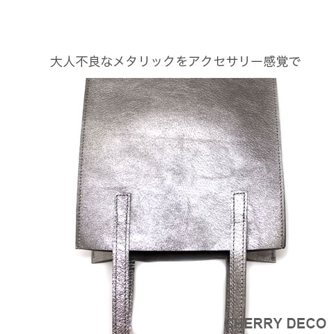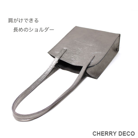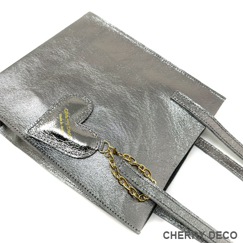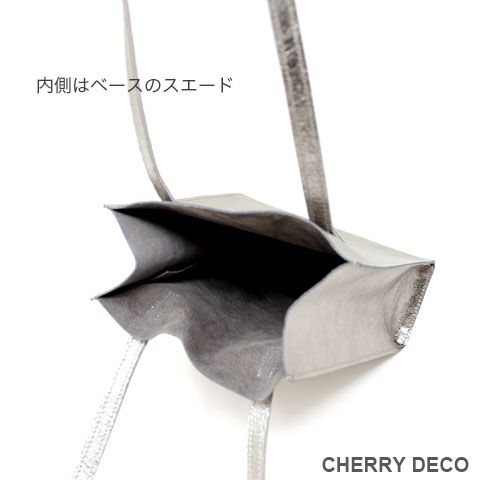 Cherry Deco Luxe コンパクトなのに収納力ありなミニトート♪日本製 かわいいプックリハート型チャーム付 本革高級スエードにオリジナル加工した箔メタリック生地 ちょっとだけ大人不良テイストなメタリックも、本革ベースだから上品なテイストに。 アクセサリー感覚で持てる、コンパクトさでコーディネートのアクセントとして気軽に持てます。 コンパクトなスッキリサイズながら、収納力抜群→長財布やペットボトルもラクラク入ります <こだわりポイント> ・日本の職人さんが豚スエードにメタリック箔加工した生地・革づくりから手作りしたオリジナル商品 ・ベースが高級スエードなので、軽くて柔らかい。クタッと馴染む高級感ある素材感 (ぜひお手にとって触っていただきたいぐらいです) ・・底中敷をつけてしっかり安定感とキレイな形を表現 ・柔らか素材なので体にフィットし、ショルダー(取手)部分も肩に馴染んで負担を軽減します ・長めのハンドルで肩かけ可能(個人差がございます) ・パンチの効いたメタリックですが、柔らかな素材感が上品なマット感でラグジュアリーさを演出 ・同じ革で作ったMトートやminicoポーチと親子で持って楽しめます。 ・貴重品を入れたご近所バッグとして、消毒グッズやサッと取り出したいものを入れて気軽に持ち歩くミニバッグとして大活躍。 ・柔らか素材なので色々な形に対応。 ・大量生産ではない、少量だが上質へのこだわり(再販が難しい又は少しお時間がかかります) ・Cherry Deco Luxe made in Japan のオリジナルタグ付き ・デザインはシンプル。生地のオシャレ感を楽しんでいただけるよう金具は使いませんでした。 ・一つ一つが職人さんの手作り。made in Japan日本製です。 ・いいものを知っている、洗練された大人の女性をイメージ。 ・これだけのこだわり要素がありながら、職人さんにも最大限にご協力いただき、できる限りコストを抑えてこのお値段を実現させました。 ・流行に左右されず、長くお楽しみいただけるよう、デザイン・色・質にこだわりました (内側には自然のもの特有の色むら・傷などがございますので予めご了承くださいませ。) ・お色は全15タイプ。メタルred・メタルpink・メタルbaby pink・メタルorange・メタルpeach・メタルgold・メタルblue・メタルpurple・メタルsilver・メタルgray・メタルnavy・メタルblack・メタルrainbow・Leopard・パイソン柄beige 色:ガンメタリック色グレーベース(メタリック箔加工) 大きさ:横18cm×幅9cm×高21cm(ショルダー立ち上がり約26cm)/付属チャーム6.5×6..5cm 素材:ピッグスエード(国産),鉄,メッキ 生産国::日本 皮革製品のお取り扱いについて注意書きタグ付き。 ※特にパイソンは、柄の出方や風合いが写真と異なります ※皮革は湿気を嫌い、濡れるとムラができたりすることがあります。 ※汗や水。摩擦により色落ちや色移りが生じる場合がございます。 ※ベンジン類のご使用はお避け下さい。 ※撮影環境などにより、多少実物とお色味が違って見える場合がございます。 ※素材の性質上、表面に細かい班やキズが見られる場合や、色むらや質感等の個体差がございます。 ※平置き、メジャー採寸の為、表記サイズと若干の誤差がある場合がございます。 上記の件につきましてご理解・ご了承の上、お買い求めくださいませ。