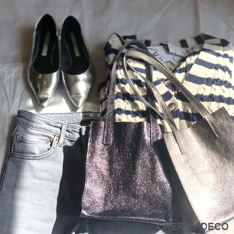 ちょっとだけ大人不良テイストなメタリックも、本革ベースだから上品なテイストに。