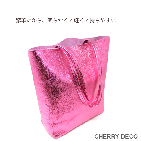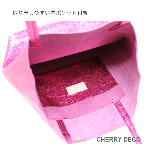 軽くて柔らかく、収納力抜群の人気者 'Mトート'♪ ミニバッグチャーム付。(取り外し可能) 見た目はスッキリ、容量はBigサイズ、女性が持つ書類バッグに”ちょうどいい”サイズ感 本革高級スエードを日本の職人さんの手によりオリジナル加工した、 質の良いメタリッック革をお楽しみくださいませ。 <こだわりポイント> ・オリジナルの生地・革づくりから手作りした徹底ぶり ・高級スエード独特のクタッと馴染む高級感ある素材感(ぜひお手にとって触っていただきたいぐらいです) ・柔らか素材なので体にフィットし、ショルダー(取手)部分も肩に馴染んで負担を軽減します ・パンチの効いたメタリックですが、柔らかな素材感がマットで上品なオシャレ感を演出。 ・縦長でスッキリ見えながらも大きな書類A4やノートパソコンも入ります。 ・柔らか素材なので色々な形に対応。お弁当など、ある程度底の広いものを平らに収納できます。 ・しっかりした中敷きあり。動かないように片方だけ本体に縫い付けてあります(必要ない時はパカっと上げて使えます) ・大量生産ではない、少量だが上質へのこだわり(再販が難しい又は少しお時間がかかります) ・Cherry Deco Luxe made in Japan のオリジナルタグ付き ・内側にポケット1つ(私は鍵やボールペンや名刺入れ等、サッと取り出したいものを入れています) ・デザインはシンプル。生地のオシャレ感を楽しんでいただけるよう金具は使いませんでした。 ・一つ一つが職人さんの手作り。made in Japan日本製です。 ・いいものを知っている、洗練された大人の女性をイメージ。安っぽくないメタルを楽しんでいただきたいです。 ・これだけのこだわり要素がありながら、職人さんにも最大限にご協力いただき、できる限りコストを抑えてこのお値段を実現させました。 ・流行に左右されず、長くお楽しみいただけるよう、デザイン・色・質にこだわりました (内側には自然のもの特有の色むら・傷などがございますので予めご了承くださいませ。) ・かわいいミニバッグチャーム付。取り外しが簡単にできて、他のバッグにも付けられます。 ipods・薬、アクセサリーなどちょっとしたものを入れてお楽しみいただけます。 ・お色は、全15タイプ。メタルGold・メタル Red・メタルPurple ・メタルNavy,・メタルGray ・メタルSilver・メタルPink・メタルGreen・メタルTurqoise・メタルRoyal Blue・メタルKhaki・メタルBaby pink・メタルBlue・メタルBlack・パイソン柄Beigeがございます (ご希望のカラーがあれば、お気軽にご相談くださいませ。) 色:ピンク(メタリック箔加工) 大きさ:横26cm×幅10cm×高32cm(持ち手立ち上がり約25cm)/バッグチャーム(約12×12cm取手含む) 素材:ピッグスエード 生産国::日本 内側ポケット1つ付き。 底中敷1つ付き。 皮革製品のお取り扱いについて注意書きタグ付き。 ※皮革は湿気を嫌い、濡れるとムラができたりすることがあります。 ※汗や水。摩擦により色落ちや色移りが生じる場合がございます。 ※ベンジン類のご使用はお避け下さい。 ※撮影環境などにより、多少実物とお色味が違って見える場合がございます。 ※素材の性質上、表面に細かい班やキズが見られる場合や、色むらや質感等の個体差がございます。 ※箔加工の過程で、場合により特有の匂いのする場合がございます。 (上記の件に関しまして、ご質問等がございましたら、お気軽にお問い合わせくださいませ。) ※なるべく無駄のないように革を使うようにしているので、特に革の裏側に傷等がある場合がございます。 ※平置き、メジャー採寸の為、表記サイズと若干の誤差がある場合がございます。 上記の件につきましてご理解・ご了承の上、お買い求めくださいませ。