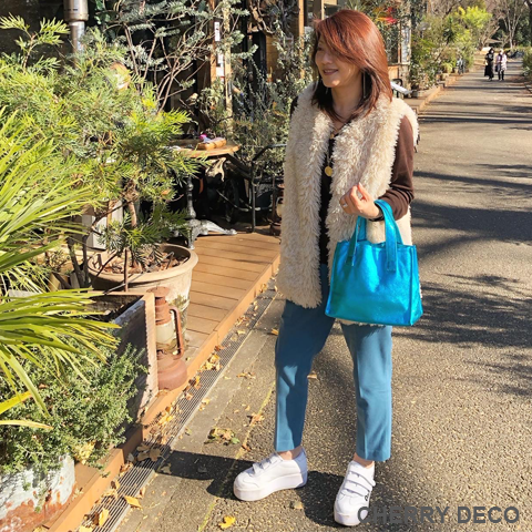 ♪CherryDeco Luxe オリジナル、アクセサリー感覚で持つメタリック箔のカラフルトート♪ 人気のCandy Toteに’ターコイズ’が登場♪ 便利でかわいい封筒型チャーム付 本革高級スエードにオリジナル加工した箔メタリック生地 ちょっとだけ大人不良テイストなメタリックも、本革ベースだから上品なテイストに。 コーディネートのアクセントとして、アクセサリー感覚で気軽に持てます。 <こだわりポイント> ・日本の職人さんが、豚スエードにメタリック箔加工した生地・革づくりから手作りしたオリジナル商品 (全ての行程を国内で行なっています) ・ベースが高級スエードなので、軽くて柔らかい。クタッと馴染む高級感ある素材感 (ぜひお手にとって触っていただきたいぐらいです) ・取り外し可能な、しっかりめの底中敷で安定感とキレイな形を表現 ・幅広デザインで収納力は抜群。中身も取り出しやすいです。 ・パンチの効いたメタリックですが、柔らかな素材感が上品なマット感でラグジュアリーさを演出 ・大量生産ではない、少量だが上質へのこだわり(再販が難しい又は少しお時間がかかります) ・Cherry Deco Luxe made in Japan のオリジナルタグ付き ・デザインはシンプル。生地のオシャレ感を楽しんでいただけるよう金具は使いませんでした。 ・一つ一つが職人さんの手作り。made in Japan日本製です。 ・これだけのこだわり要素がありながら、職人さんにも最大限にご協力いただき、できる限りコストを抑えてこのお値段を実現させました。 ・流行に左右されず、長くお楽しみいただけるよう、デザイン・色・質にこだわりました (内側には自然のもの特有の色むら・傷などがございますので予めご了承くださいませ。) ・お色はブルー・グリーン・ガンメタリック・ピンク・オレンジ・パープル・ターコイズ・ブラック・レッド・ゴールド・ペパーミント・ベビーピンク・ネイビー・シルバー・ピーチ・カーキロイヤルブルー・レインボーの18色 色:ターコイズブルー/付属チャーム→silver 大きさ:横25cm×縦21cm×幅15cm/付属チャーム横9cm×縦6cm×幅2cm 素材:豚スエード(メタリック箔加工) 生産国:日本 ※皮革は湿気を嫌い、濡れるとムラができたりすることがあります。 ※汗や水。摩擦により色落ちや色移りが生じる場合がございます。 ※ベンジン類のご使用はお避け下さい。 ※撮影環境などにより、多少実物とお色味が違って見える場合がございます。 ※素材の性質上、表面に細かい班やキズが見られる場合や、色むらや質感等の個体差がございます。 ※箔加工の過程で、場合により特有の匂いのする場合がございます。 (上記の件に関しまして、ご質問等がございましたら、お気軽にお問い合わせくださいませ。) ※なるべく無駄のないように革を使うようにしているので、特に革の裏側に傷等がある場合がございます。 ※平置き、メジャー採寸の為、表記サイズと若干の誤差がある場合がございます。 上記の件につきましてご理解・ご了承の上、お買い求めくださいませ。