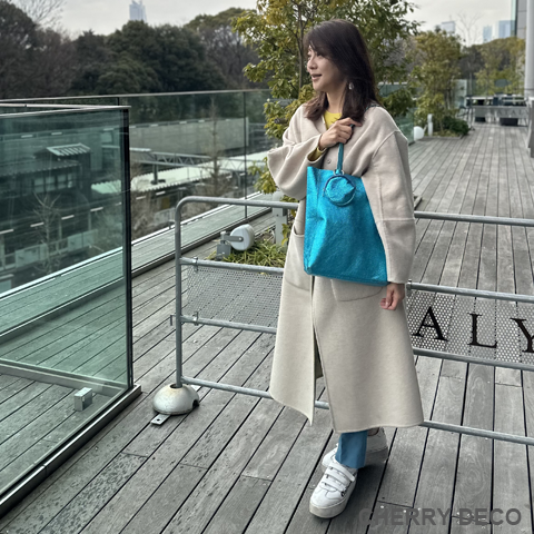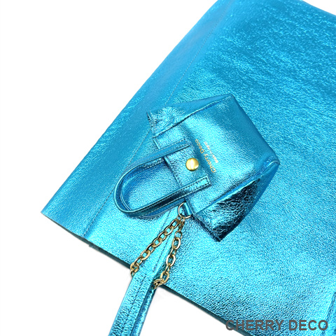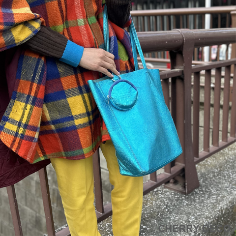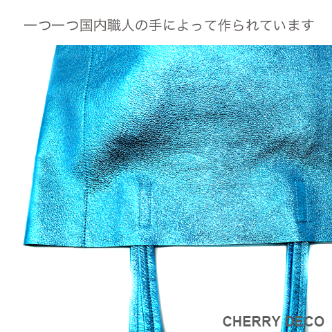 軽くて柔らかく、収納力抜群の人気者 'Mトート'♪ ミニバッグチャーム付。(取り外し可能) 見た目はスッキリ、容量はBigサイズ、女性が持つ書類バッグに”ちょうどいい”サイズ感 本革高級スエードを日本の職人さんの手によりオリジナル加工した、 質の良いメタリッック革をお楽しみくださいませ。 <こだわりポイント> ・オリジナルの生地・革づくりから手作りした徹底ぶり ・高級スエード独特のクタッと馴染む高級感ある素材感(ぜひお手にとって触っていただきたいぐらいです) ・柔らか素材なので体にフィットし、ショルダー(取手)部分も肩に馴染んで負担を軽減します ・パンチの効いたメタリックですが、柔らかな素材感がマットで上品なオシャレ感を演出。 ・縦長でスッキリ見えながらも大きな書類A4やノートパソコンも入ります。 ・柔らか素材なので色々な形に対応。お弁当など、ある程度底の広いものを平らに収納できます。 ・しっかりした中敷きあり。動かないように片方だけ本体に縫い付けてあります(必要ない時はパカっと上げて使えます) ・大量生産ではない、少量だが上質へのこだわり(再販が難しい又は少しお時間がかかります) ・Cherry Deco Luxe made in Japan のオリジナルタグ付き ・内側にポケット1つ(私は鍵やボールペンや名刺入れ等、サッと取り出したいものを入れています) ・デザインはシンプル。生地のオシャレ感を楽しんでいただけるよう金具は使いませんでした。 ・一つ一つが職人さんの手作り。made in Japan日本製です。 ・いいものを知っている、洗練された大人の女性をイメージ。安っぽくないメタルを楽しんでいただきたいです。 ・これだけのこだわり要素がありながら、職人さんにも最大限にご協力いただき、できる限りコストを抑えてこのお値段を実現させました。 ・流行に左右されず、長くお楽しみいただけるよう、デザイン・色・質にこだわりました (内側には自然のもの特有の色むら・傷などがございますので予めご了承くださいませ。) ・かわいいミニバッグチャーム付。取り外しが簡単にできて、他のバッグにも付けられます。 ipods・薬、アクセサリーなどちょっとしたものを入れてお楽しみいただけます。 ・お色は、全15タイプ。メタルGold・メタル Red・メタルPurple ・メタルNavy,・メタルGray ・メタルSilver・メタルPink・メタルGreen・メタルTurqoise・メタルRoyal Blue・メタルKhaki・メタルBaby pink・メタルBlue・メタルBlack・パイソン柄Beigeがございます (ご希望のカラーがあれば、お気軽にご相談くださいませ。) 色:ターコイズブルー(メタリック箔加工) 大きさ:横26cm×幅10cm×高32cm(持ち手立ち上がり約25cm)/バッグチャーム(約12×12cm取手含む) 素材:ピッグスエード 生産国::日本 内側ポケット1つ付き。 底中敷1つ付き。 皮革製品のお取り扱いについて注意書きタグ付き。 ※皮革は湿気を嫌い、濡れるとムラができたりすることがあります。 ※汗や水。摩擦により色落ちや色移りが生じる場合がございます。 ※ベンジン類のご使用はお避け下さい。 ※撮影環境などにより、多少実物とお色味が違って見える場合がございます。 ※素材の性質上、表面に細かい班やキズが見られる場合や、色むらや質感等の個体差がございます。 ※箔加工の過程で、場合により特有の匂いのする場合がございます。 (上記の件に関しまして、ご質問等がございましたら、お気軽にお問い合わせくださいませ。) ※なるべく無駄のないように革を使うようにしているので、特に革の裏側に傷等がある場合がございます。 ※平置き、メジャー採寸の為、表記サイズと若干の誤差がある場合がございます。 上記の件につきましてご理解・ご了承の上、お買い求めくださいませ。