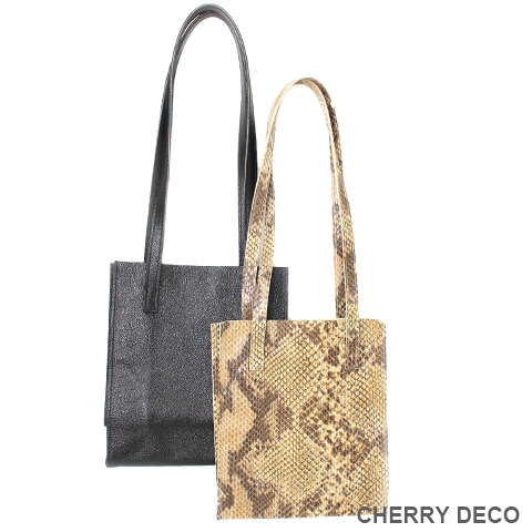 本革 MS トート (メタルBlack・パイソン柄Beige)