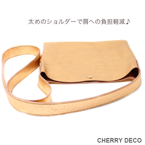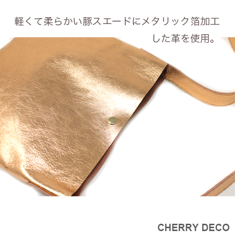 ♪軽くて、柔らかい豚革サコッシュ・大人のメタリックでオシャレ度UP♪(CherryDeco Luxe 日本製)