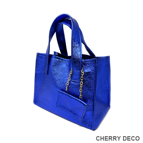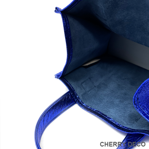 ♪CherryDeco Luxe オリジナル、アクセサリー感覚で持つメタリック箔のカラフルトート♪ 人気のCandy Toteに’新色ロイヤルブルー’が登場♪ 便利でかわいい封筒型チャーム付き 本革高級スエードにオリジナル加工した箔メタリック生地 ちょっとだけ大人不良テイストなメタリックも、本革ベースだから上品なテイストに。 コーディネートのアクセントとして、アクセサリー感覚で気軽に持てます。 <こだわりポイント> ・日本の職人さんが、豚スエードにメタリック箔加工した生地・革づくりから手作りしたオリジナル商品 (全ての行程を国内で行なっています) ・ベースが高級スエードなので、軽くて柔らかい。クタッと馴染む高級感ある素材感 (ぜひお手にとって触っていただきたいぐらいです) ・取り外し可能な、しっかりめの底中敷で安定感とキレイな形を表現 ・幅広デザインで収納力は抜群。中身も取り出しやすいです。 ・パンチの効いたメタリックですが、柔らかな素材感が上品なマット感でラグジュアリーさを演出 ・大量生産ではない、少量だが上質へのこだわり(再販が難しい又は少しお時間がかかります) ・Cherry Deco Luxe made in Japan のオリジナルタグ付き ・デザインはシンプル。生地のオシャレ感を楽しんでいただけるよう金具は使いませんでした。 ・一つ一つが職人さんの手作り。made in Japan日本製です。 ・これだけのこだわり要素がありながら、職人さんにも最大限にご協力いただき、できる限りコストを抑えてこのお値段を実現させました。 ・流行に左右されず、長くお楽しみいただけるよう、デザイン・色・質にこだわりました (内側には自然のもの特有の色むら・傷などがございますので予めご了承くださいませ。) ・お色はブルー・グリーン・ガンメタリック・ピンク・オレンジ・パープル・ターコイズ・ブラック・レッド・ゴールド・ペパーミント・ベビーピンク・ネイビー・シルバー・ピーチ・カーキロイヤルブルー・レインボーの18色 色:深みのあるブルー色/付属チャームgold 大きさ:横25cm×縦21cm×幅15cm/付属チャーム横9cm×縦6cm×幅2cm 素材:豚スエード(メタリック箔加工) 生産国:日本 ※皮革は湿気を嫌い、濡れるとムラができたりすることがあります。 ※汗や水。摩擦により色落ちや色移りが生じる場合がございます。 ※ベンジン類のご使用はお避け下さい。 ※撮影環境などにより、多少実物とお色味が違って見える場合がございます。 ※素材の性質上、表面に細かい班やキズが見られる場合や、色むらや質感等の個体差がございます。 ※箔加工の過程で、場合により特有の匂いのする場合がございます。 (上記の件に関しまして、ご質問等がございましたら、お気軽にお問い合わせくださいませ。) ※なるべく無駄のないように革を使うようにしているので、特に革の裏側に傷等がある場合がございます。 ※平置き、メジャー採寸の為、表記サイズと若干の誤差がある場合がございます。 上記の件につきましてご理解・ご了承の上、お買い求めくださいませ。