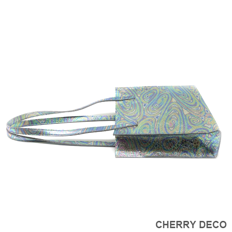 色:シルバーベースにピンク・イエロー・ブルーなどのマーブル模様(メタリック箔加工)