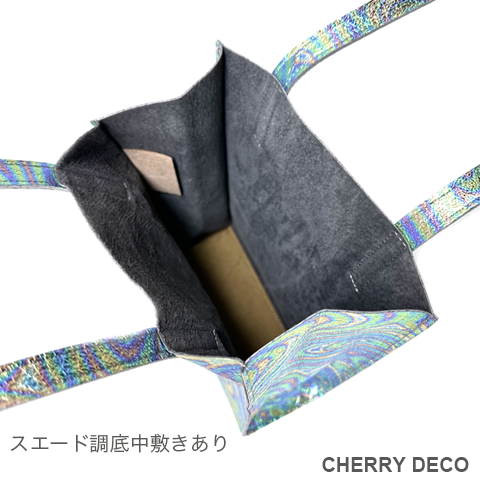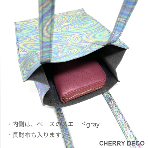 Cherry Deco Luxe コンパクトなのに収納力ありなミニトート♪日本製 かわいいプックリハート型チャーム付(取り外し可) 本革高級スエードにオリジナル加工した箔メタリック生地 ちょっとだけ大人不良テイストなメタリックも、本革ベースだから上品なテイストに。 アクセサリー感覚で持てる、コンパクトさでコーディネートのアクセントとして気軽に持てます。 コンパクトなスッキリサイズながら、収納力抜群→長財布やペットボトルもラクラク入ります <こだわりポイント> ・日本の職人さんが豚スエードにメタリック箔加工した生地・革づくりから手作りしたオリジナル商品 ・ベースが高級スエードなので、軽くて柔らかい。クタッと馴染む高級感ある素材感 (ぜひお手にとって触っていただきたいぐらいです) ・・底中敷をつけてしっかり安定感とキレイな形を表現 ・柔らか素材なので体にフィットし、ショルダー(取手)部分も肩に馴染んで負担を軽減します ・長めのハンドルで肩かけ可能(個人差がございます) ・パンチの効いたメタリックですが、柔らかな素材感が上品なマット感でラグジュアリーさを演出 ・同じ革で作ったMトートやminicoポーチと親子で持って楽しめます。 ・貴重品を入れたご近所バッグとして、消毒グッズやサッと取り出したいものを入れて気軽に持ち歩くミニバッグとして大活躍。 ・柔らか素材なので色々な形に対応。 ・大量生産ではない、少量だが上質へのこだわり(再販が難しい又は少しお時間がかかります) ・Cherry Deco Luxe made in Japan のオリジナルタグ付き ・デザインはシンプル。生地のオシャレ感を楽しんでいただけるよう金具は使いませんでした。 ・一つ一つが職人さんの手作り。made in Japan日本製です。 ・いいものを知っている、洗練された大人の女性をイメージ。 ・これだけのこだわり要素がありながら、職人さんにも最大限にご協力いただき、できる限りコストを抑えてこのお値段を実現させました。 ・流行に左右されず、長くお楽しみいただけるよう、デザイン・色・質にこだわりました (内側には自然のもの特有の色むら・傷などがございますので予めご了承くださいませ。) ・お色は全15タイプ。メタルred・メタルpink・メタルbaby pink・メタルorange・メタルpeach・メタルgold・メタルblue・メタルpurple・メタルsilver・メタルgray・メタルnavy・メタルblack・メタルrainbow・Leopard・パイソン柄beige 色:シルバーベースにピンク・イエロー・ブルーなどのマーブル模様(メタリック箔加工) 大きさ:横18cm×幅9cm×高21cm(ショルダー立ち上がり約26cm)/付属チャーム6.5×6..5cm 素材:ピッグスエード(国産),鉄,メッキ 生産国::日本 皮革製品のお取り扱いについて注意書きタグ付き。 ※特にパイソンは、柄の出方や風合いが写真と異なります ※皮革は湿気を嫌い、濡れるとムラができたりすることがあります。 ※汗や水。摩擦により色落ちや色移りが生じる場合がございます。 ※ベンジン類のご使用はお避け下さい。 ※撮影環境などにより、多少実物とお色味が違って見える場合がございます。 ※素材の性質上、表面に細かい班やキズが見られる場合や、色むらや質感等の個体差がございます。 ※平置き、メジャー採寸の為、表記サイズと若干の誤差がある場合がございます。 上記の件につきましてご理解・ご了承の上、お買い求めくださいませ。