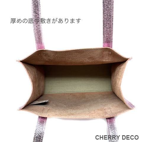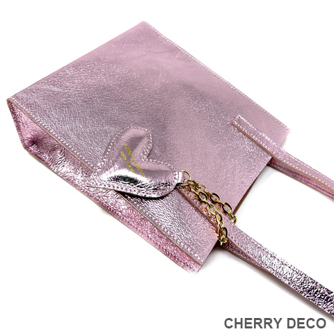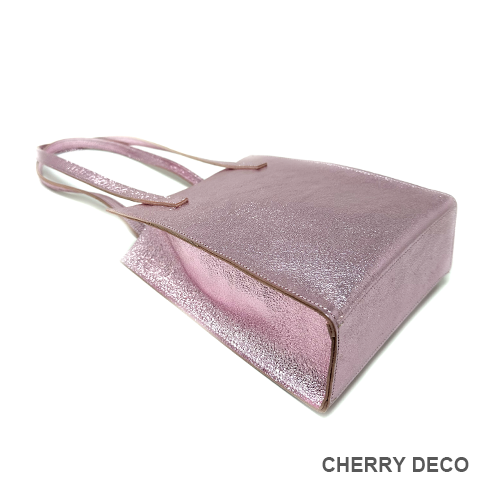 Cherry Deco Luxe コンパクトなのに収納力ありなミニトート♪日本製 かわいいプックリしたハート型チャーム付 本革高級スエードにオリジナル加工した箔メタリック生地 ちょっとだけ大人不良テイストなメタリックも、本革ベースだから上品なテイストに。 アクセサリー感覚で持てる、コンパクトさでコーディネートのアクセントとして気軽に持てます。 コンパクトなスッキリサイズながら、収納力抜群→長財布やペットボトルもラクラク入ります <こだわりポイント> ・日本の職人さんが豚スエードにメタリック箔加工した生地・革づくりから手作りしたオリジナル商品 ・ベースが高級スエードなので、軽くて柔らかい。クタッと馴染む高級感ある素材感 (ぜひお手にとって触っていただきたいぐらいです) ・・底中敷をつけてしっかり安定感とキレイな形を表現 ・柔らか素材なので体にフィットし、ショルダー(取手)部分も肩に馴染んで負担を軽減します ・長めのハンドルで肩かけ可能(個人差がございます) ・パンチの効いたメタリックですが、柔らかな素材感が上品なマット感でラグジュアリーさを演出 ・同じ革で作ったMトートやminicoポーチと親子で持って楽しめます。 ・貴重品を入れたご近所バッグとして、消毒グッズやサッと取り出したいものを入れて気軽に持ち歩くミニバッグとして大活躍。 ・柔らか素材なので色々な形に対応。 ・大量生産ではない、少量だが上質へのこだわり(再販が難しい又は少しお時間がかかります) ・Cherry Deco Luxe made in Japan のオリジナルタグ付き ・デザインはシンプル。生地のオシャレ感を楽しんでいただけるよう金具は使いませんでした。 ・一つ一つが職人さんの手作り。made in Japan日本製です。 ・いいものを知っている、洗練された大人の女性をイメージ。 ・これだけのこだわり要素がありながら、職人さんにも最大限にご協力いただき、できる限りコストを抑えてこのお値段を実現させました。 ・流行に左右されず、長くお楽しみいただけるよう、デザイン・色・質にこだわりました (内側には自然のもの特有の色むら・傷などがございますので予めご了承くださいませ。) ・お色は全Cherry Deco Luxe コンパクトなのに収納力ありなミニトート♪日本製 ・お色は全15タイプ。メタルred・メタルpink・メタルbaby pink・メタルorange・メタルpeach・メタルgold・メタルblue・メタルpurple・メタルsilver・メタルgray・メタルnavy・メタルblack・メタルrainbow・Leopard・パイソン柄beige 色:薄いピンク色(メタリック箔加工) 大きさ:横18cm×幅9cm×高21cm(ショルダー立ち上がり約26cm)/付属チャーム6.5×6..5cm 素材:ピッグスエード(国産),鉄,メッキ 生産国::日本 皮革製品のお取り扱いについて注意書きタグ付き。 ※特にパイソンは、柄の出方や風合いが写真と異なります ※皮革は湿気を嫌い、濡れるとムラができたりすることがあります。 ※汗や水。摩擦により色落ちや色移りが生じる場合がございます。 ※ベンジン類のご使用はお避け下さい。 ※撮影環境などにより、多少実物とお色味が違って見える場合がございます。 ※素材の性質上、表面に細かい班やキズが見られる場合や、色むらや質感等の個体差がございます。 ※平置き、メジャー採寸の為、表記サイズと若干の誤差がある場合がございます。 上記の件につきましてご理解・ご了承の上、お買い求めくださいませ。