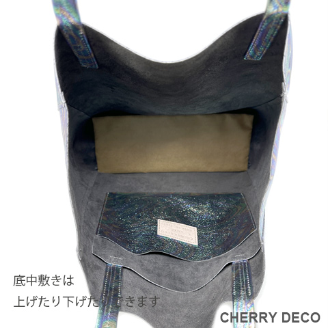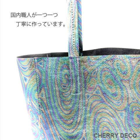 軽くて柔らかく、収納力抜群の人気者 'Mトート'♪ ミニバッグチャーム付。(取り外し可能) 見た目はスッキリ、容量はBigサイズ、女性が持つ書類バッグに”ちょうどいい”サイズ感 本革高級スエードを日本の職人さんの手によりオリジナル加工した、 質の良いメタリッック革をお楽しみくださいませ。 <こだわりポイント> ・オリジナルの生地・革づくりから手作りした徹底ぶり ・高級スエード独特のクタッと馴染む高級感ある素材感(ぜひお手にとって触っていただきたいぐらいです) ・柔らか素材なので体にフィットし、ショルダー(取手)部分も肩に馴染んで負担を軽減します ・パンチの効いたメタリックですが、柔らかな素材感がマットで上品なオシャレ感を演出。 ・縦長でスッキリ見えながらも大きな書類A4やノートパソコンも入ります。 ・柔らか素材なので色々な形に対応。お弁当など、ある程度底の広いものを平らに収納できます。 ・しっかりした中敷きあり。動かないように片方だけ本体に縫い付けてあります(必要ない時はパカっと上げて使えます) ・大量生産ではない、少量だが上質へのこだわり(再販が難しい又は少しお時間がかかります) ・Cherry Deco Luxe made in Japan のオリジナルタグ付き ・内側にポケット1つ(私は鍵やボールペンや名刺入れ等、サッと取り出したいものを入れています) ・デザインはシンプル。生地のオシャレ感を楽しんでいただけるよう金具は使いませんでした。 ・一つ一つが職人さんの手作り。made in Japan日本製です。 ・いいものを知っている、洗練された大人の女性をイメージ。安っぽくないメタルを楽しんでいただきたいです。 ・これだけのこだわり要素がありながら、職人さんにも最大限にご協力いただき、できる限りコストを抑えてこのお値段を実現させました。 ・流行に左右されず、長くお楽しみいただけるよう、デザイン・色・質にこだわりました (内側には自然のもの特有の色むら・傷などがございますので予めご了承くださいませ。) ・かわいいミニバッグチャーム付。取り外しが簡単にできて、他のバッグにも付けられます。 ipods・薬、アクセサリーなどちょっとしたものを入れてお楽しみいただけます。 ・お色は、全15タイプ。メタルGold・メタル Red・メタルPurple ・メタルNavy,・メタルGray ・メタルSilver・メタルPink・メタルGreen・メタルTurqoise・メタルRoyal Blue・メタルKhaki・メタルBaby pink・メタルBlue・メタルBlack・パイソン柄Beigeがございます (ご希望のカラーがあれば、お気軽にご相談くださいませ。) 色:シルバーベースにピンク・イエロー・ブルーなどのマーブル模様(メタリック箔加工) 大きさ:横26cm×幅10cm×高32cm(持ち手立ち上がり約25cm)/バッグチャーム(約12×12cm取手含む) 素材:ピッグスエード 生産国::日本 内側ポケット1つ付き。 底中敷1つ付き。 皮革製品のお取り扱いについて注意書きタグ付き。 ※皮革は湿気を嫌い、濡れるとムラができたりすることがあります。 ※汗や水。摩擦により色落ちや色移りが生じる場合がございます。 ※ベンジン類のご使用はお避け下さい。 ※撮影環境などにより、多少実物とお色味が違って見える場合がございます。 ※素材の性質上、表面に細かい班やキズが見られる場合や、色むらや質感等の個体差がございます。 ※箔加工の過程で、場合により特有の匂いのする場合がございます。 (上記の件に関しまして、ご質問等がございましたら、お気軽にお問い合わせくださいませ。) ※なるべく無駄のないように革を使うようにしているので、特に革の裏側に傷等がある場合がございます。 ※平置き、メジャー採寸の為、表記サイズと若干の誤差がある場合がございます。 上記の件につきましてご理解・ご了承の上、お買い求めくださいませ。