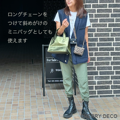 ・長いチェーン(別売り。又は、お手持ちのもの)を付けて、ミニショルダーバッグとしてもお楽しみいただけます。