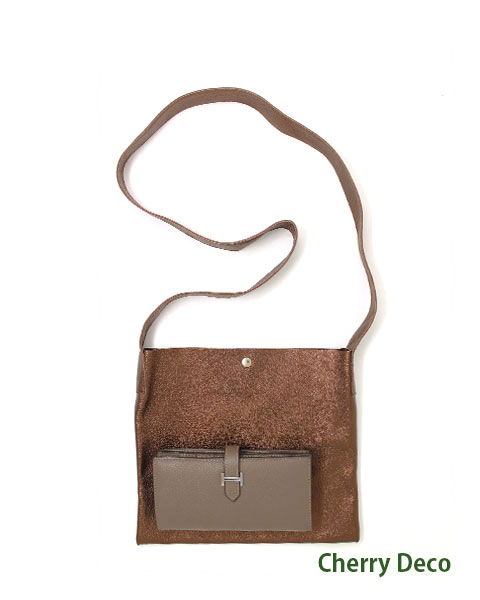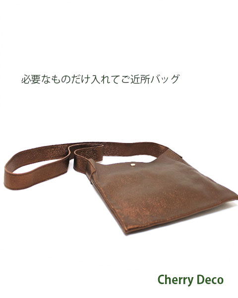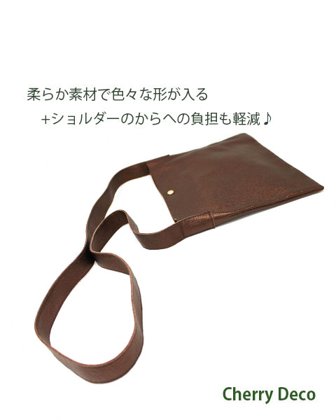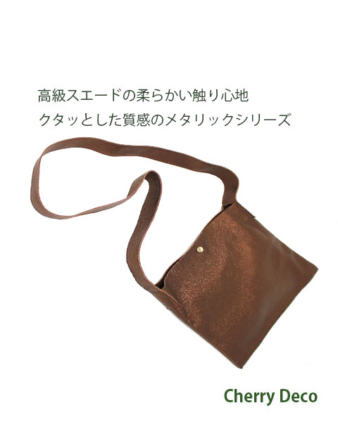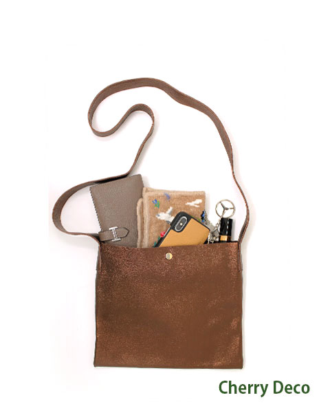 ♪Cherry Deco Luxe 軽くて柔らかい、ラグジュアリー感のあるサコッシュ♪日本製 本革高級スエードにオリジナル加工した箔メタリッック生地 をご用意いたしました。 店長のこだわりに賛同してくださったプロチームの汗と涙の結晶です。 <こだわりポイント> ・廃棄する国内豚皮を革へと加工し、革づくりから国内で職人が手作りした徹底ぶり ・高級豚スエード独特の軽さとクタッと柔らかく、馴染む素材感(ぜひお手にとって触っていただきたいぐらいです) ・柔らか素材なので体にフィットし、ショルダー(取手)部分も肩に馴染んで負担を軽減します ・ショルダーは幅はデザインと肩への負担を考えて少し太めの約3cm ・デザインを考慮してショルダー調整金具等はつけませんでした。(結んで調整できます) (身長・性別・年齢関係なく幅広い方々へお使いいただけるよう長さを計算しました。) ・ショルダーは斜めがけしても、肩がけしても、紐を短く結んでも、手で握って持っても…色々なパターンで持てます。 ・パンチの効いたメタリックですが、柔らかな素材感が上品なマット感でラグジュアリーさを演出 ・大量生産ではない、少量だが上質へのこだわり(再販が難しい又は少しお時間がかかります) ・Cherry Deco Luxe made in Japan のオリジナルタグ付き ・身の回りのもの(お財布・スマホ・鍵・ハンカチetc.)がしっかり入り、サッと取り出せる便利な大きさ ・革の小慣れたオシャレ感を楽しんでいただく為に、デザインはできるだけシンプルに。 ・一つ一つが職人さんの手作り。made in Japan日本製です。 ・いいものを知っている、洗練された大人の女性をイメージ。 ・これだけのこだわり要素がありながら、職人さんにも最大限にご協力いただき、できる限りコストを抑えてこのお値段を実現させました。 ・流行に左右されず、長くお楽しみいただけるよう、デザイン・色・質にこだわりました (内側には自然のもの特有の色むら・傷などがございますので予めご了承くださいませ。) ・同じ生地を使っているので、MトートやMSトートとの2個もちや親子でコーディネートをお楽しみいただくこともできます。 ・お色は、全11タイプ。メタルSilver・メタル Peach・メタルNavy ・メタルBrown・メタルRainbow・メタルBlack・メタルkhaki・メタルgold・メタルgray・Leopard・パイソン柄Beigeがございます (ご希望のカラーがあれば、お気軽にご相談くださいませ。) 色:茶色(メタリック箔加工) 大きさ:横26.5cm×高22.5cm,ショルダー長さ約105cm(幅3cm) 素材:ピッグスエード(メタリック箔加工) 生産国::日本 ホック留め1つ付き(1.3cm) 皮革製品のお取り扱いについて注意書きタグ付き。 ※皮革は湿気を嫌い、濡れるとムラができたりすることがあります。 ※汗や水。摩擦により色落ちや色移りが生じる場合がございます。 ※ベンジン類のご使用はお避け下さい。 ※撮影環境などにより、多少実物とお色味が違って見える場合がございます。 ※素材の性質上、表面に細かい班やキズが見られる場合や、色むらや質感等の個体差がございます。 ※箔加工の過程で、場合により特有の匂いのする場合がございます。 (上記の件に関しまして、ご質問等がございましたら、お気軽にお問い合わせくださいませ。) ※なるべく無駄のないように革を使うようにしているので、特に革の裏側に傷等がある場合がございます。 ※平置き、メジャー採寸の為、表記サイズと若干の誤差がある場合がございます。 上記の件につきましてご理解・ご了承の上、お買い求めくださいませ。