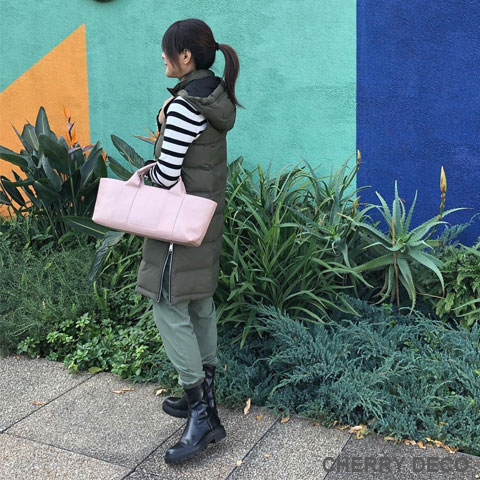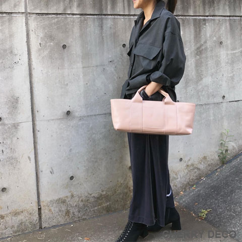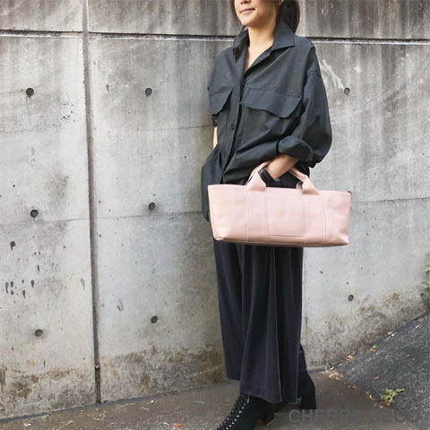 ・カジュアルになりがちなトートバッグを横長フォルムにすることで大人っぽい女性らしさを表現。
