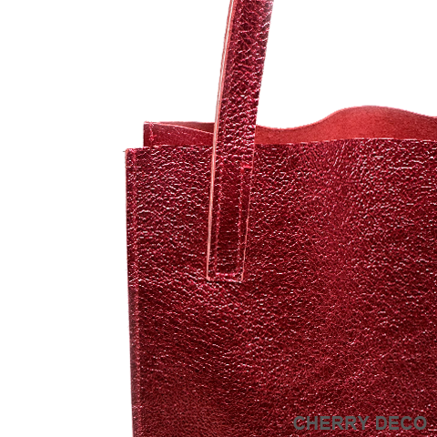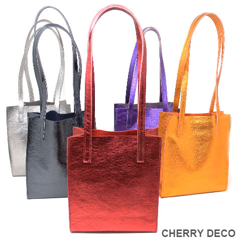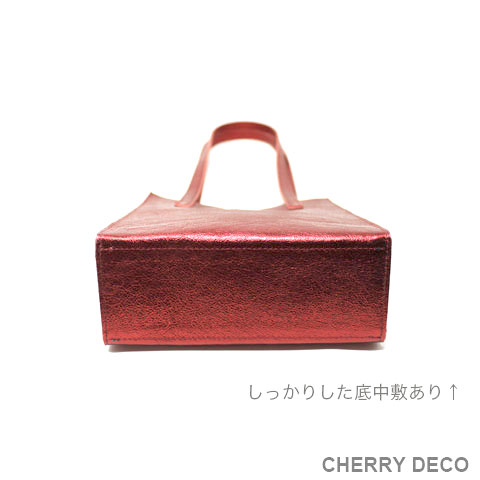 Cherry Deco Luxe コンパクトなのに収納力ありなミニトート♪日本製 かわいいプックリハート型チャーム付 本革高級スエードにオリジナル加工した箔メタリック生地 ちょっとだけ大人不良テイストなメタリックも、本革ベースだから上品なテイストに。 アクセサリー感覚で持てる、コンパクトさでコーディネートのアクセントとして気軽に持てます。 コンパクトなスッキリサイズながら、収納力抜群→長財布やペットボトルもラクラク入ります <こだわりポイント> ・日本の職人さんが豚スエードにメタリック箔加工した生地・革づくりから手作りしたオリジナル商品 ・ベースが高級スエードなので、軽くて柔らかい。クタッと馴染む高級感ある素材感 (ぜひお手にとって触っていただきたいぐらいです) ・底中敷をつけてしっかり安定感とキレイな形を表現 ・柔らか素材なので体にフィットし、ショルダー(取手)部分も肩に馴染んで負担を軽減します ・長めのハンドルで肩かけ可能(個人差がございます) ・パンチの効いたメタリックですが、柔らかな素材感が上品なマット感でラグジュアリーさを演出 ・同じ革で作ったMトートやminicoポーチと親子で持って楽しめます。 ・貴重品を入れたご近所バッグとして、消毒グッズやサッと取り出したいものを入れて気軽に持ち歩くミニバッグとして大活躍。 ・柔らか素材なので色々な形に対応。 ・大量生産ではない、少量だが上質へのこだわり(再販が難しい又は少しお時間がかかります) ・Cherry Deco Luxe made in Japan のオリジナルタグ付き ・デザインはシンプル。生地のオシャレ感を楽しんでいただけるよう金具は使いませんでした。 ・一つ一つが職人さんの手作り。made in Japan日本製です。 ・いいものを知っている、洗練された大人の女性をイメージ。 ・これだけのこだわり要素がありながら、職人さんにも最大限にご協力いただき、できる限りコストを抑えてこのお値段を実現させました。 ・流行に左右されず、長くお楽しみいただけるよう、デザイン・色・質にこだわりました (内側には自然のもの特有の色むら・傷などがございますので予めご了承くださいませ。) ・お色は全15タイプ。メタルred・メタルpink・メタルbaby pink・メタルorange・メタルpeach・メタルgold・メタルblue・メタルpurple・メタルsilver・メタルgray・メタルnavy・メタルblack・メタルrainbow・Leopard・パイソン柄beige 色:赤(メタリック箔加工) 大きさ:横18cm×幅9cm×高21cm(ショルダー立ち上がり約26cm)/付属チャーム6.5×6..5cm 素材:ピッグスエード(メタリック箔加工) 生産国::日本 皮革製品のお取り扱いについて注意書きタグ付き。 ※皮革は湿気を嫌い、濡れるとムラができたりすることがあります。 ※汗や水。摩擦により色落ちや色移りが生じる場合がございます。 ※ベンジン類のご使用はお避け下さい。 ※撮影環境などにより、多少実物とお色味が違って見える場合がございます。 ※素材の性質上、表面に細かい班やキズが見られる場合や、色むらや質感等の個体差がございます。 ※箔加工の過程で、場合により特有の匂いのする場合がございます。 (上記の件に関しまして、ご質問等がございましたら、お気軽にお問い合わせくださいませ。) ※なるべく無駄のないように革を使うようにしているので、特に革の裏側に傷等がある場合がございます。 ※平置き、メジャー採寸の為、表記サイズと若干の誤差がある場合がございます。 上記の件につきましてご理解・ご了承の上、お買い求めくださいませ。